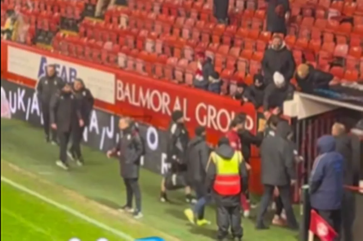 But controversy arose following the full-time whistle when Belgium star Raskin squirted a home supporter with water as he walked down the tunnel. It was a fiery atmosphere at Pittodrie, with Dons fans showing no love for the Glasgow giants.